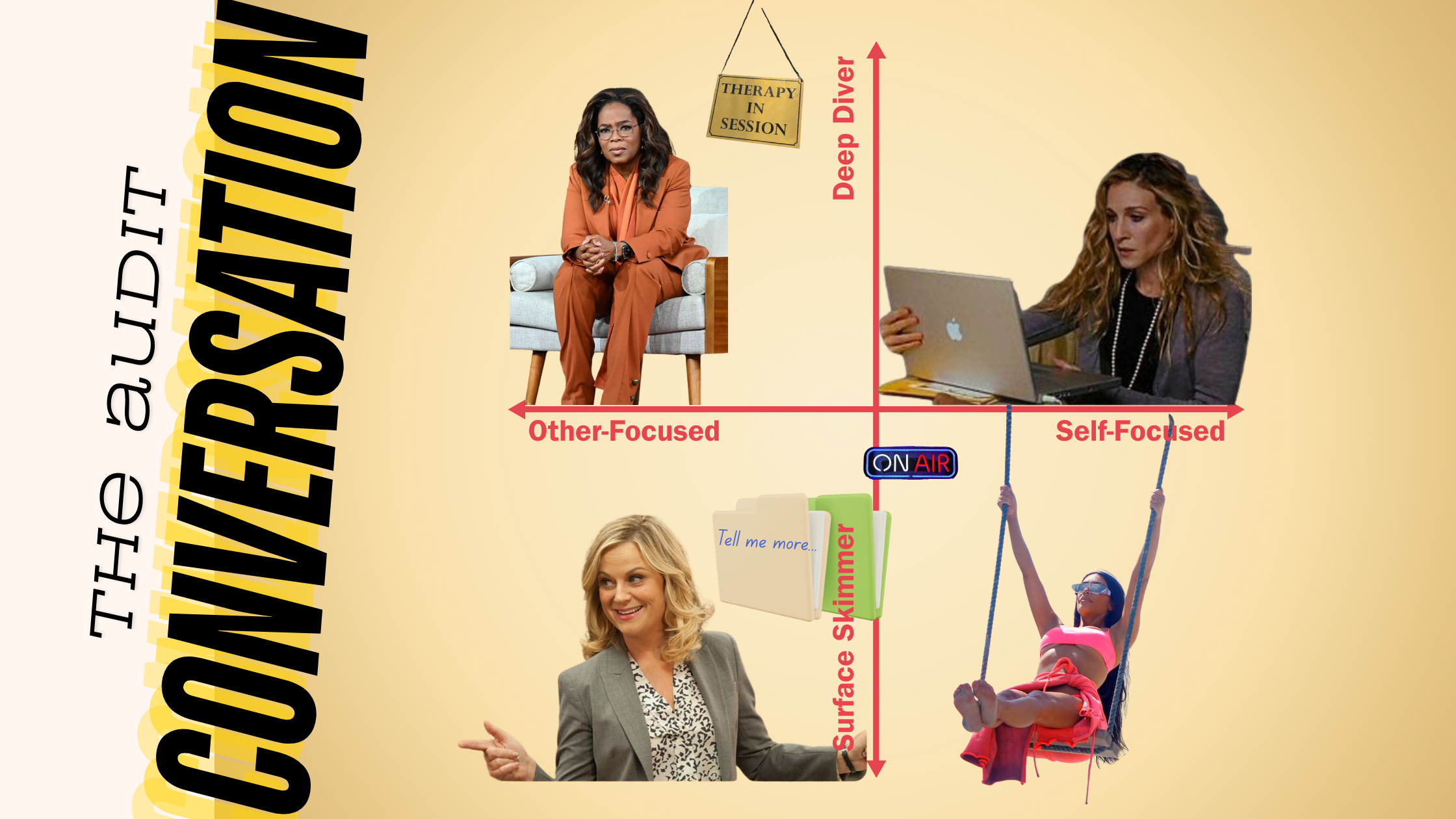 This creates four distinct conversation archetypes, each with its own strengths, blind spots, and cultural references that help us recognize them in action.